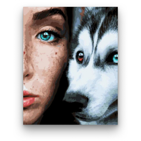 Lány és a farkas - számfestő készlet – 40×50 cm (Keret nélkül) A kép titokzatos összhangot áraszt, ahol a tekintetek mélyen magukkal ragadják a nézőt. Egy különleges kapcsolat bontakozik ki a festményen, amely tele van rejtett történetekkel és érzelmekkel