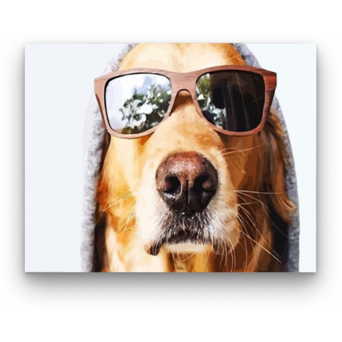 Laza kutya - számfestő készlet – 40×50 cm (Keret nélkül) Ez a festmény egy laza, nyugodt hangulatot áraszt, amely mosolyt csal a néző arcára. A kép egy történetet mesél el egy különleges pillanatról, ahol a hétköznapok humorral és könnyedséggel telnek meg