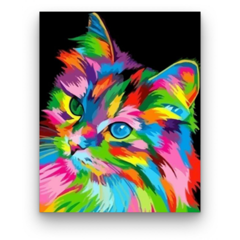 Legszínesebb cica - számfestő készlet – 40×50 cm (Keret nélkül) Készíts gyönyörű műalkotásokat, előzetes festő tudás nélkül! Éld át az alkotás gyönyörű pillanatait és varázslatos hangulatát! Akkor is gyönyörű festményeket hozhatsz létre, ha még nem festet
