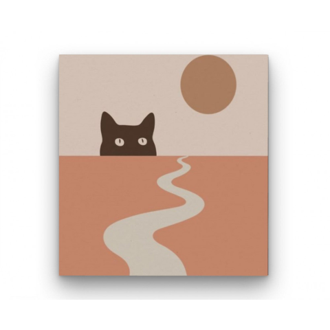 Leselkedő - gyerek számfestő készlet – 20×20 cm (Keret nélkül) Ez a kép egy kíváncsi cicát ábrázol, aki éppen a távolban leselkedik a naplementében. A meleg színek vidám és meghitt hangulatot varázsolnak. Tökéletes választás a gyerekek első számmal festős