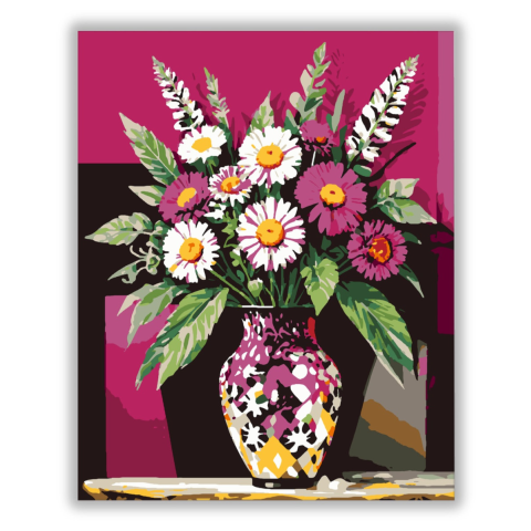 Lila álom - számfestő készlet – 40×50 cm (Keret nélkül) A kép élénk színei az életöröm és frissesség érzését keltik a nézőben. A virágok lendületes elrendezése egy történetet mesél el a természet szépségéről és harmóniájáról. A mély rózsaszín és zöld árny