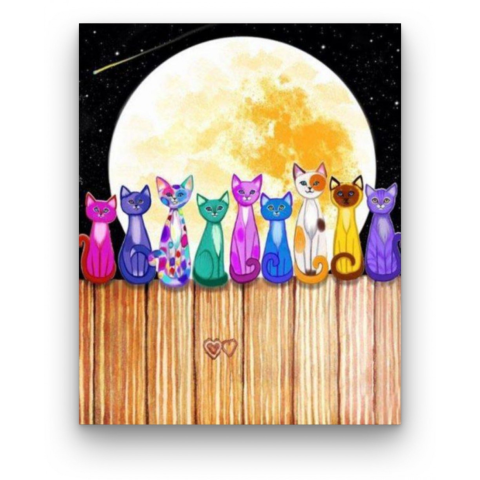 Macskák a Holdfényben - számfestő készlet – 40×50 cm (Keret nélkül) Készíts gyönyörű műalkotásokat, előzetes festő tudás nélkül! Éld át az alkotás gyönyörű pillanatait és varázslatos hangulatát! Akkor is gyönyörű festményeket hozhatsz létre, ha még nem fe