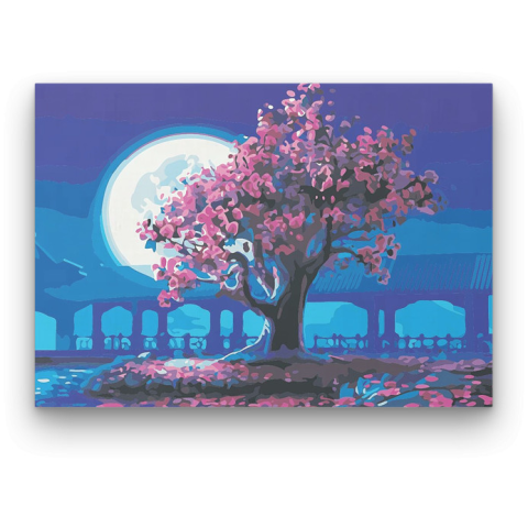 1 kép Számfestő Magányos Fa a Teliholdnál - számfestő készlet