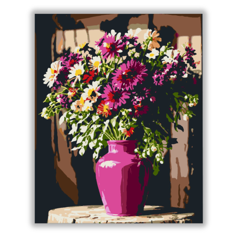 Magenta álom - számfestő készlet – 40×50 cm (Keret nélkül) A festmény vibráló színei egy nyári kert frissességét idézik, mely az otthon melegével fonódik össze. A vázában pompázó virágok történeteket mesélnek a természet szépségéről és a pillanatok múland