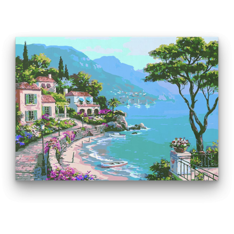 1 kép Számfestő Mediterrán tengerparti falu - számfestő készlet