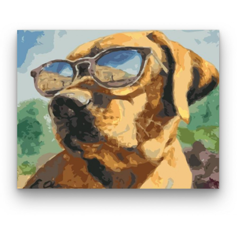 Menő kutya - számfestő készlet – 40×50 cm (Keret nélkül) Ez a festmény egy nyári nap könnyed és vidám hangulatát idézi, ahol minden gondolat a szabadságról és az örömről szól. A kép egy történetet mesél el egy kalandos lélekről, aki élvezi a pillanatot és