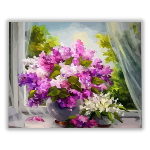 Meseszép orgona csokor - számfestő készlet – 40×50 cm (Keret nélkül) A festmény frissessége és élénksége azonnal magával ragadja a nézőt, mintha egy tavaszi reggel szellője simogatná. Egy történet bontakozik ki a színek és formák között, amely a természet