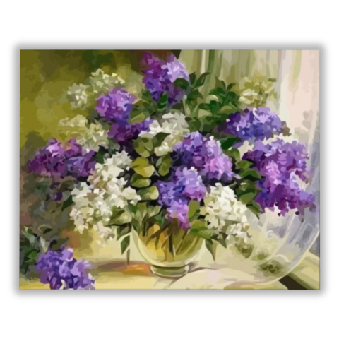 Meseszép orgona - számfestő készlet – 40×50 cm (Keret nélkül) Ez a festmény egy békés, tavaszi hangulatot áraszt, amely elvarázsolja a nézőt. Egy történet bontakozik ki a virágok között, mintha egy régi emlék elevenedne meg. A lila és fehér színek kontras