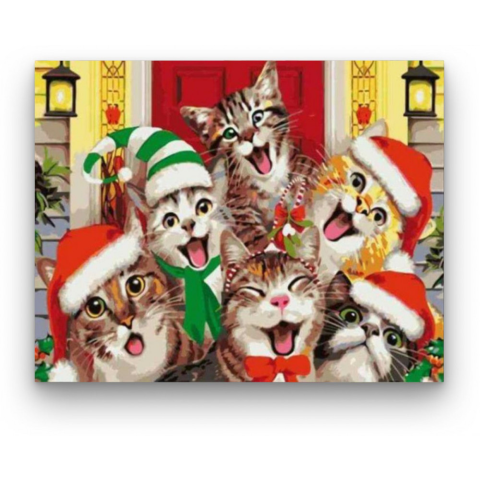 Mikulás Macskák - számfestő készlet – 40×50 cm (Keret nélkül) Készíts gyönyörű műalkotásokat, előzetes festő tudás nélkül! Éld át az alkotás gyönyörű pillanatait és varázslatos hangulatát! Akkor is gyönyörű festményeket hozhatsz létre, ha még nem festetté