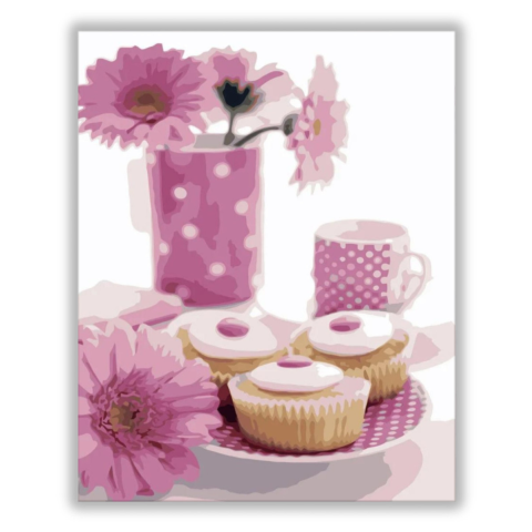 Muffinok - számfestő készlet – 40×50 cm (Keret nélkül) Készíts gyönyörű műalkotásokat, előzetes festő tudás nélkül! Éld át az alkotás gyönyörű pillanatait és varázslatos hangulatát! Akkor is gyönyörű festményeket hozhatsz létre, ha még nem festettél vászo