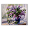Orgona az ablakban - számfestő készlet – 40×50 cm (Keret nélkül) A festmény lágy, tavaszi hangulatot áraszt, amely nyugalmat és frissességet hoz a néző számára. Egy történetet mesél el a természet ébredéséről, ahogy a virágok kibontakoznak az ablakban. A