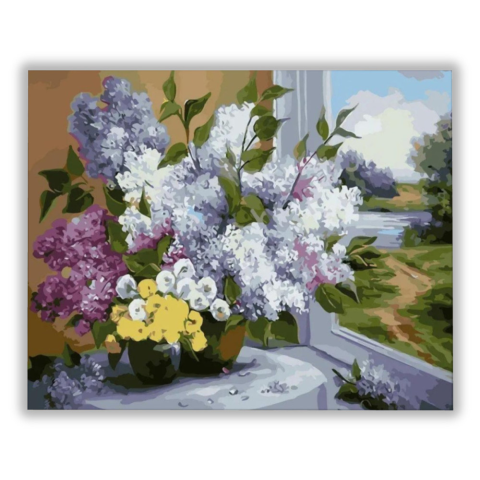 Orgona csokor - számfestő készlet – 40×50 cm (Keret nélkül) Ez a festmény egy nyugodt, tavaszi reggel hangulatát idézi elő, ahol a friss orgonák illata betölti a levegőt. A képen ábrázolt virágcsokor mintha egy történetet mesélne el egy régóta várt találk