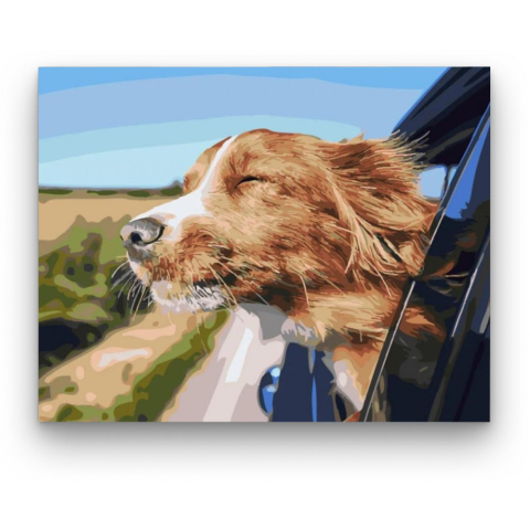 Örömteli utazás - számfestő készlet – 40×50 cm (Keret nélkül) A festmény örömteli szabadságérzetet sugároz, ahogy a szél az arcunkat simogatja. Egy kalandos utazás pillanata elevenedik meg előttünk, tele boldogsággal és kíváncsisággal. A meleg barna és zö