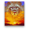 Oroszlán napfény - számfestő készlet – 40×50 cm (Keret nélkül) Az oroszlán portréja vibráló színekben ragyog, erőt és méltóságot sugározva a néző felé. Egy történet bontakozik ki, ahol a naplemente fényében az állat királyi megjelenése uralja a tájat. A m