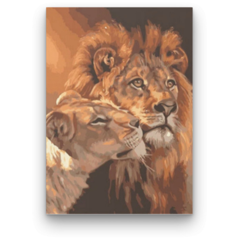 Oroszlánok - számfestő készlet – 40×50 cm (Keret nélkül) Ez a festmény mélységes nyugalmat és erőt áraszt, ahogy az oroszlánok tekintete találkozik. A kép egy történetet mesél el a természet szépségéről és az állatok közötti különleges kapcsolatról. Az ar