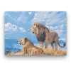 Oroszlánpár - számfestő készlet – 40×50 cm (Keret nélkül) A kép vadregényes hangulatot áraszt, mely az afrikai szavanna szívébe repíti a nézőt. Egy történet bontakozik ki, ahol az oroszlánpár csendes méltósággal figyeli birodalmát. A kék égbolt és a napfé