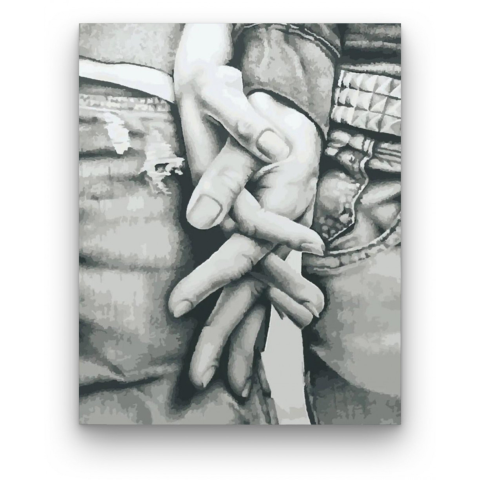 Összetartozás - számfestő készlet – 40×50 cm (Keret nélkül) Ez a festmény a csendes összetartozás érzését árasztja, ahol a kezek finom érintése történeteket mesél el. A kompozícióban rejlő intimitás megidézi az egymás iránti bizalom és szeretet mélységét.