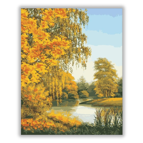 Őszi folyópart - számfestő készlet – 40×50 cm (Keret nélkül) Az őszi folyópart festménye meghitt nyugalmat áraszt, mintha egy mesés világba vezetne. A kép egy titokzatos történetet sejtet, ahol a természet csendje és szépsége uralkodik. Az aranyló levelek