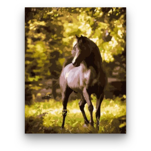 Paripa - számfestő készlet – 40×50 cm (Keret nélkül) A festményen megjelenő paripa eleganciája és szabadsága szinte tapintható, magával ragadva a nézőt egy mesés világba. Egy rejtélyes történet bontakozik ki, ahol a természet és az állat közötti harmónia