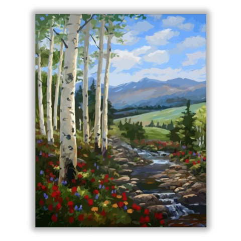 Patak csobogás - számfestő készlet – 40×50 cm (Keret nélkül) A festmény békés hangulata az erdei patak csobogását idézi fel, amely elcsendesíti a lélek zaját. Egy titokzatos utazásra invitál, ahol a természet szépségei között barangolhatunk. A színek vibr