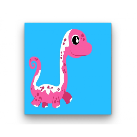 Pink dinó - gyerek számfestő készlet – 20×20 cm (Keret nélkül) Ez a kép egy bájos, rózsaszín dinót mutat, aki boldogan mosolyog a kék háttér előtt. A vidám színek és a kedves figura igazi kalandra csábítják a kis művészeket. Tökéletes választás a gyerekek