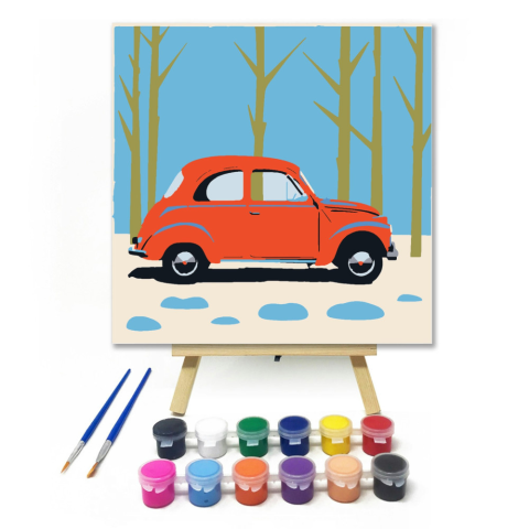1 kép Számfestő Piros autó az erdőben - gyerek számfestő készlet