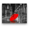 Piros esernyő - számfestő készlet – 40×50 cm (Keret nélkül) A kép hangulata magával ragadó, melankolikus, mintha egy esős éjszakán sétálnánk a városban. Az élénk piros esernyő történetet mesél egy elhagyott pillanatról, ami megállítja az időt. A szürke há