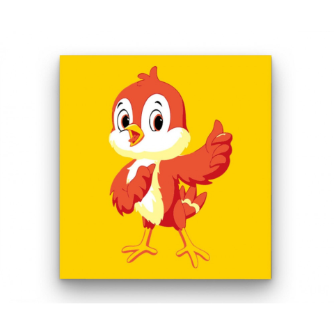 Produkció - gyerek számfestő készlet – 20×20 cm (Keret nélkül) Ez a kép egy vidám, piros madárkát ábrázol, ahogy bájosan integet a sárga háttér előtt. A színes festékek készen állnak, hogy életre keltsék ezt az aranyos kis barátot. Tökéletes választás a g