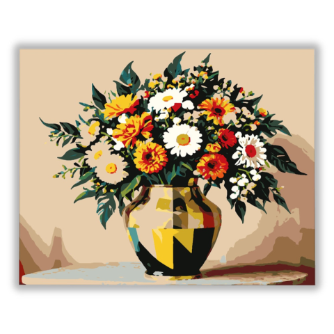 Reggeli ragyogó virágok - számfestő készlet – 40×50 cm (Keret nélkül) A kép nyugodt, mégis életteli hangulatot áraszt, mintha a természet frissessége töltené meg a teret. Egy varázslatos pillanatot ragad meg, ahol a virágok színpompás kavalkádja mesél az