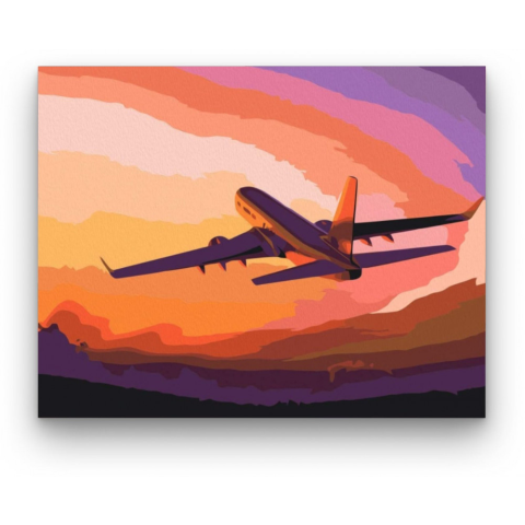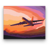 Repülőgép - számfestő készlet – 40×50 cm (Keret nélkül) A festmény egy repülőgépet ábrázol, amely a naplemente varázslatos színeiben úszik, meghitt nyugalmat árasztva. A gép sziluettje egy utazás kezdetét idézi, ahol az égbolt narancs és lila árnyalatai m