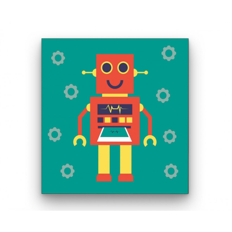 Robot - gyerek számfestő készlet – 20×20 cm (Keret nélkül) Ez a kép egy vidám robotot ábrázol, aki színes gombjaival készen áll a kalandra! A barátságos piros és sárga színek életre keltik a robot világát. Tökéletes választás a gyerekek első kreatív felfe