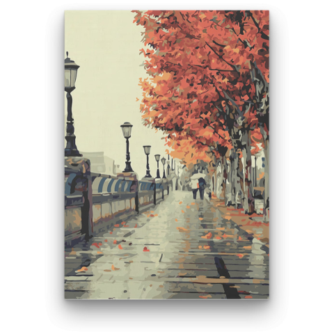 Romantikus Szerelem Ősszel - számfestő készlet – 40×50 cm (Keret nélkül) Ez a festmény az ősz romantikus melankóliáját idézi meg, ahol a sétányon sétálók csendes pillanatai elevenednek meg. A kép mesél egy találkozásról, amelyet a levelek aranyló színei é