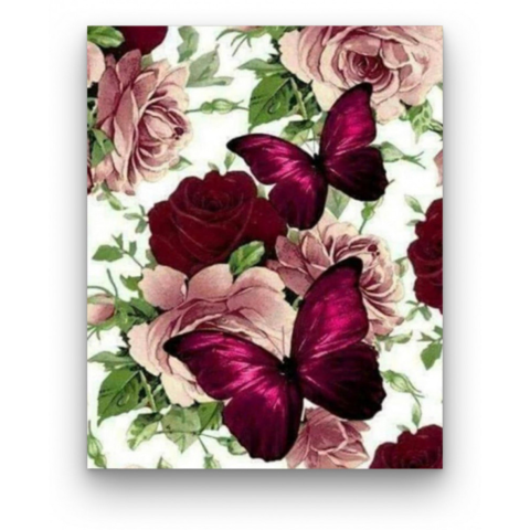 Rózsa És Pillangó - számfestő készlet – 40×50 cm (Keret nélkül) A festmény finom eleganciát sugároz, ahogy a pillangók szárnyalnak a rózsák között. Egy titokzatos kert jelenik meg előttünk, ahol a természet varázsa megelevenedik. A mély bordó és lágy rózs