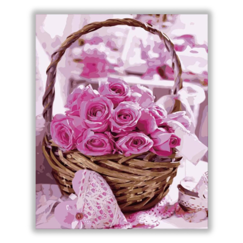 Rózsa kosárban - számfestő készlet – 40×50 cm (Keret nélkül) A festmény lágy, romantikus hangulatot áraszt, amely azonnal magával ragadja a nézőt. Egy titokzatos történet bontakozik ki a rózsák között, mintha egy különleges pillanat lenne megörökítve. A r