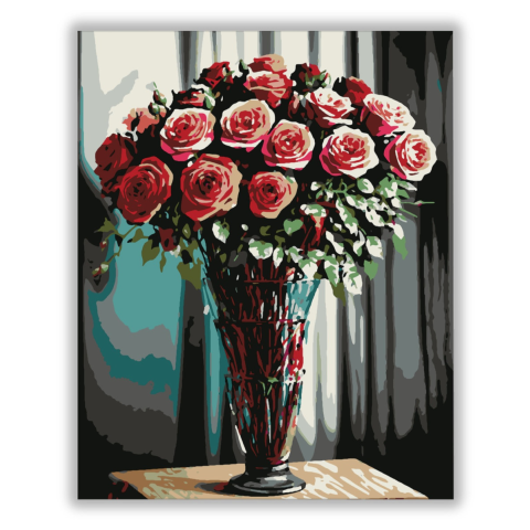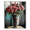 Rózsás ragyogás - számfestő készlet – 40×50 cm (Keret nélkül) A kép egy elegáns, romantikus hangulatot áraszt, amely a nézőt azonnal magával ragadja. Egy történet bontakozik ki a csokor rózsa körül, mintha egy különleges alkalom emlékét őrizné. A piros és