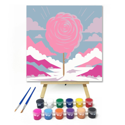 Rózsaszín felhők - gyerek számfestő készlet – 20×20 cm (Keret nélkül) Ez a kép egy csodás rózsaszín felhőt ábrázol, amely az égbolton lebeg, mint egy mesebeli vattacukor. A barátságos rózsaszín és lila árnyalatok varázslatos hangulatot teremtenek. Tökélet