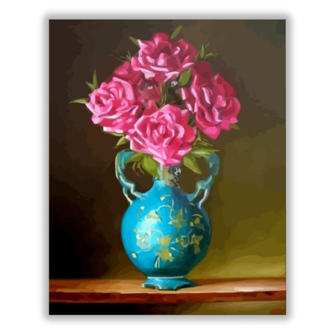 1 kép Számfestő Rózsaszín virágok kék vázában - számfestő készlet
