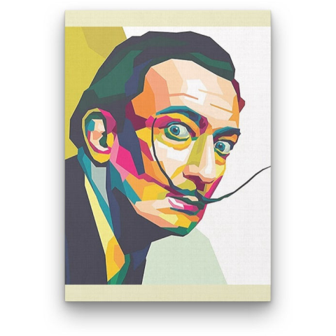 Salvador Dali portré - számfestő készlet – 40×50 cm (Keret nélkül) Készíts gyönyörű műalkotásokat, előzetes festő tudás nélkül! Éld át az alkotás gyönyörű pillanatait és varázslatos hangulatát! Akkor is gyönyörű festményeket hozhatsz létre, ha még nem fes