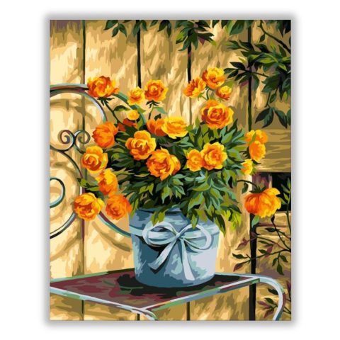 Sárga rózsa - számfestő készlet – 40×50 cm (Keret nélkül) Ez a festmény egy meleg, nyári délután hangulatát idézi, ahol a természet szépsége ragyogó virágokban teljesedik ki. A kép mögött meghúzódó történet talán egy eldugott kert titkait rejti, ahol mind