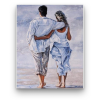 Séta a Parton - számfestő készlet – 40×50 cm (Keret nélkül) A festmény lágyan öleli körül a nézőt, békés és romantikus hangulatot árasztva. Egy pár sétál kéz a kézben a parton, mintha egy közös történet kezdetét írnák meg. A pasztell színek és a háttér fi