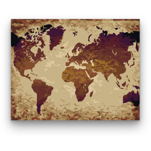 1 kép Számfestő Sötétbarna Világtérkép - számfestő készlet