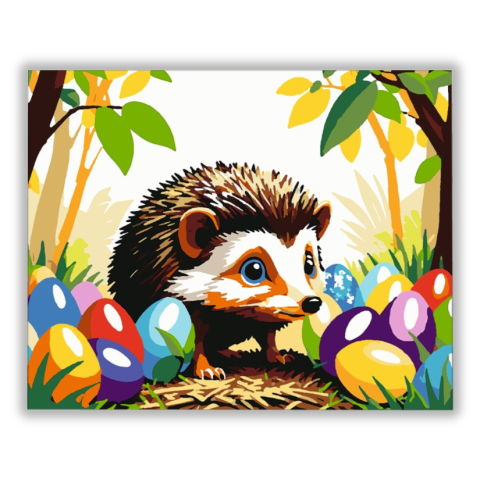 Sünike Színes Tojásokkal - húsvéti számfestő készlet – 40×50 cm (Keret nélkül) Készíts gyönyörű műalkotásokat, előzetes festő tudás nélkül! Éld át az alkotás gyönyörű pillanatait és varázslatos hangulatát! Akkor is gyönyörű festményeket hozhatsz létre, ha