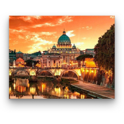 Szent Péter Bazilika Róma - számfestő készlet – 40×50 cm (Keret nélkül) Készíts gyönyörű műalkotásokat, előzetes festő tudás nélkül! Éld át az alkotás gyönyörű pillanatait és varázslatos hangulatát! Akkor is gyönyörű festményeket hozhatsz létre, ha még ne