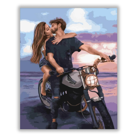 Szerelem a motoron - számfestő készlet – 40×50 cm (Keret nélkül) Ez a festmény a szabadság és a szenvedély pillanatát ragadja meg, amely azonnal magával ragadja a nézőt. A történet egy romantikus kalandot mesél el, ahol a végtelen út és a naplemente talá