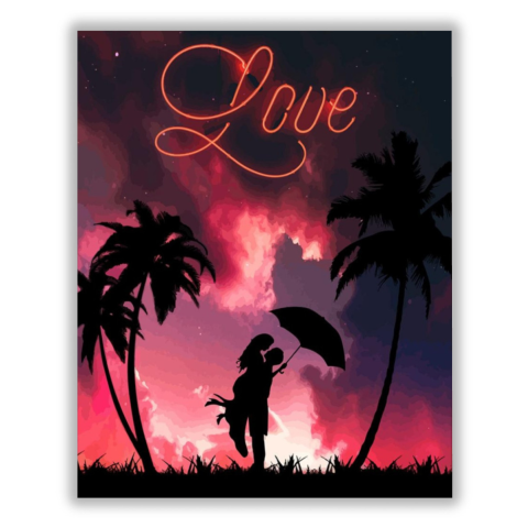 Szerelem a Pálmafák alatt - számfestő készlet – 40×50 cm (Keret nélkül) A festmény romantikus hangulatot áraszt, amely a szerelem varázsát idézi meg. Egy titokzatos történet bontakozik ki a pálmafák alatt, ahol a szenvedély és az intimitás találkozik. A v