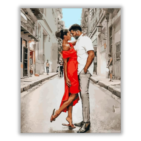 Szerelmes szívek - számfestő készlet – 40×50 cm (Keret nélkül) A festmény romantikus pillanatot örökít meg egy városi utca forgatagában, ahol a szerelem és intimitás uralja a teret. A kép mesél egy találkozásról, amely tele van szenvedéllyel és élettel. A