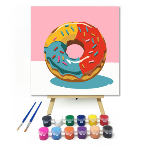 Színes fánk - gyerek számfestő készlet – 20×20 cm (Keret nélkül) Ez a kép egy színes, mosolygós fánkot ábrázol, ami csak arra vár, hogy megédesítse a napodat! A vidám rózsaszín, kék és sárga színek igazi játékos hangulatot varázsolnak. Tökéletes választás