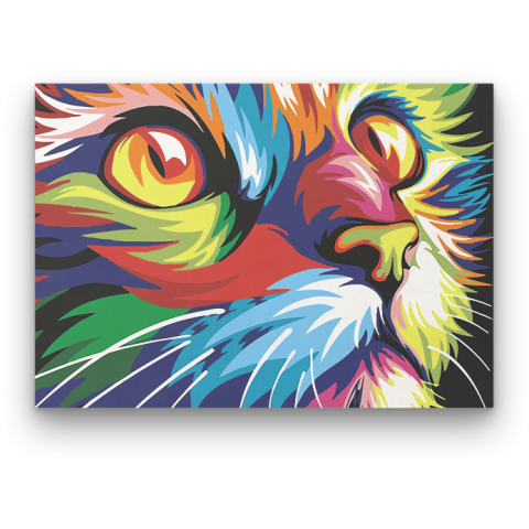 Színes Macska - számfestő készlet – 40×50 cm (Keret nélkül) Ez a festmény vibráló energiát sugároz, amely azonnal magával ragadja a nézőt. A színek kavalkádja egy misztikus történetet mesél el, ahol minden ecsetvonás új felfedezést ígér. A háttér mély kon
