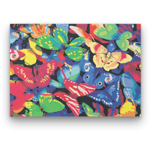 Színes Pillangók - számfestő készlet – 40×50 cm (Keret nélkül) Ez a festmény élénk színeivel az élet örömét és a természet vibrálását sugározza. A pillangók kavalkádja mesés történeteket idéz, mintha egy varázslatos kertbe lépnénk. A színek káprázatos har
