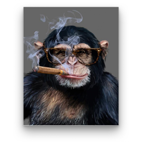 Szivarozás - számfestő készlet – 40×50 cm (Keret nélkül) Ez a festmény egy játékos, mégis elegáns hangulatot áraszt, amely azonnal magával ragadja a nézőt. A kép mögött egy történet bontakozik ki, ahol a humor és a kifinomultság találkozik. A szürke hátté